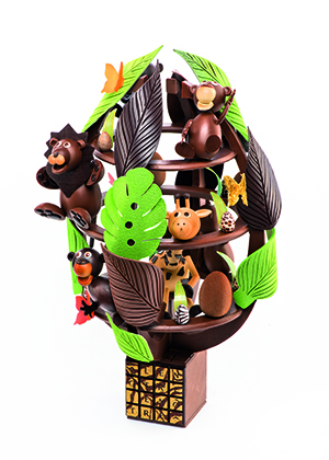 Lenôtre présente son Safari Show à traver cette pièce de 4 kg, en édition limitée, en chocolat lait et chocolat noir, au prix de 790 euros.