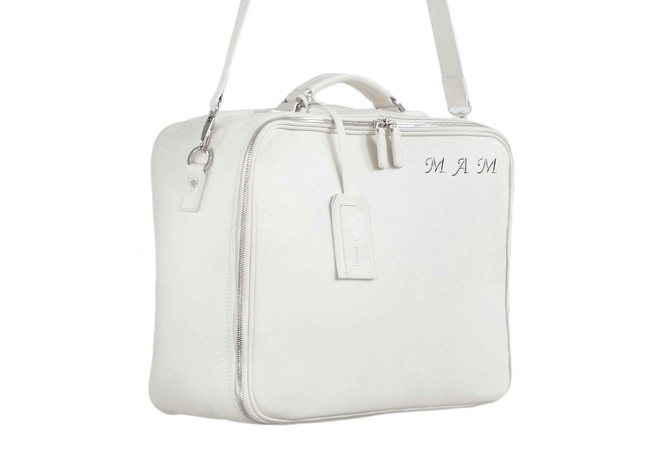 La valise « Baby Love » en cuir d’agneau plongé (3 coloris) monogramme sur commande se décline en 3 ors. Prix sur demande.